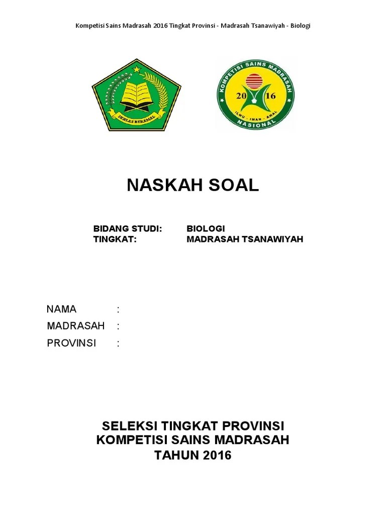 Ksm biologi ma kab/kota 2017 | download; Download soal ksm mts tingkat kabupaten/kota : Kunci jawaban ksm kota 2018. Download soal ksm mts bidang ips tingkat kabupaten/kota :. Mata pelajaran yang dilombakan pada ksm ini .